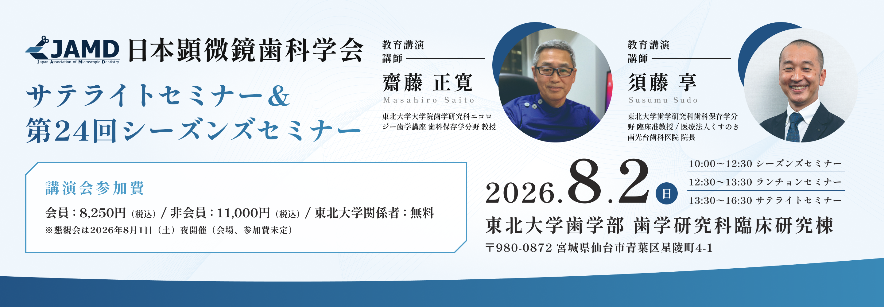 会員サイト 初回ログイン設定ガイド Seminar 学術大会・セミナー 第23回学術大会・総会(仙台) 開催日 2027.04.09 〜 2027.04.11 View More News お知らせ View More すべて セミナー 学術大会 一般向けお知らせ 2026.3.04 一般向けお知らせ 日本歯科医学会 認定分科会登録のお知らせ 2025.12.23 一般向けお知らせ 【事務局】冬季休暇のお知らせ 2025.11.26 学術大会 日本顕微鏡歯科学会 第22回学術大会 演題募集のご案内 2025.11.25 学術大会 日本歯科保存学会2025年度秋季学術大会における連携シンポジスト登壇について 2025.11.14 セミナー 第23回シーズンズセミナー(ウインター)発表者募集開始! 2025.10.22 セミナー シーズンズセミナー(ウインター)は2026年1月18日(日)に福岡で開催!非会員の参加も可能です! 2025.6.27 セミナー 2025シーズンズセミナー(サマー)演題募集期間延長! 2025.5.29 セミナー 第22回シーズンズセミナー(サマー)開催!参加者と発表者を募集中です! 2025.11.26 学術大会 日本顕微鏡歯科学会 第22回学術大会 演題募集のご案内 2025.11.25 学術大会 日本歯科保存学会2025年度秋季学術大会における連携シンポジスト登壇について 2025.10.01 学術大会 第22回日本顕微鏡歯科学会学術大会 参加申し込み受付開始! 2025.7.11 学術大会 2026年東京大会の特設サイトオープン! 2026.3.04 一般向けお知らせ 日本歯科医学会 認定分科会登録のお知らせ 2025.12.23 一般向けお知らせ 【事務局】冬季休暇のお知らせ 2025.9.09 一般向けお知らせ 認定歯科衛生士制度の変更について(2028年施行予定) 2025.5.01 一般向けお知らせ 認定指導医規則の一部改定 および 取得単位一覧の改定について View More Journal 学会誌・発行物 MICROThe International Journal of Microdentistry 2024年15巻2号 View More J-STAGEよりMICRO掲載の論文がご覧いただけます。 会長挨拶 View More 日本顕微鏡歯科学会とは View More 組織・役員 View More 学術大会・セミナー View More 入会案内 View More 認定制度について View More